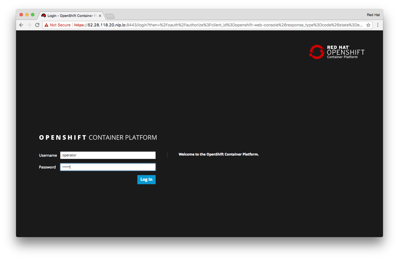 ⇨ Point your browser to the URL and log in as user operator with password r3dh4t: